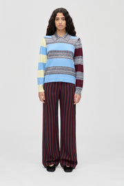 Mix Stripe Polo Collar Sweater - Multistripes Blue Mix